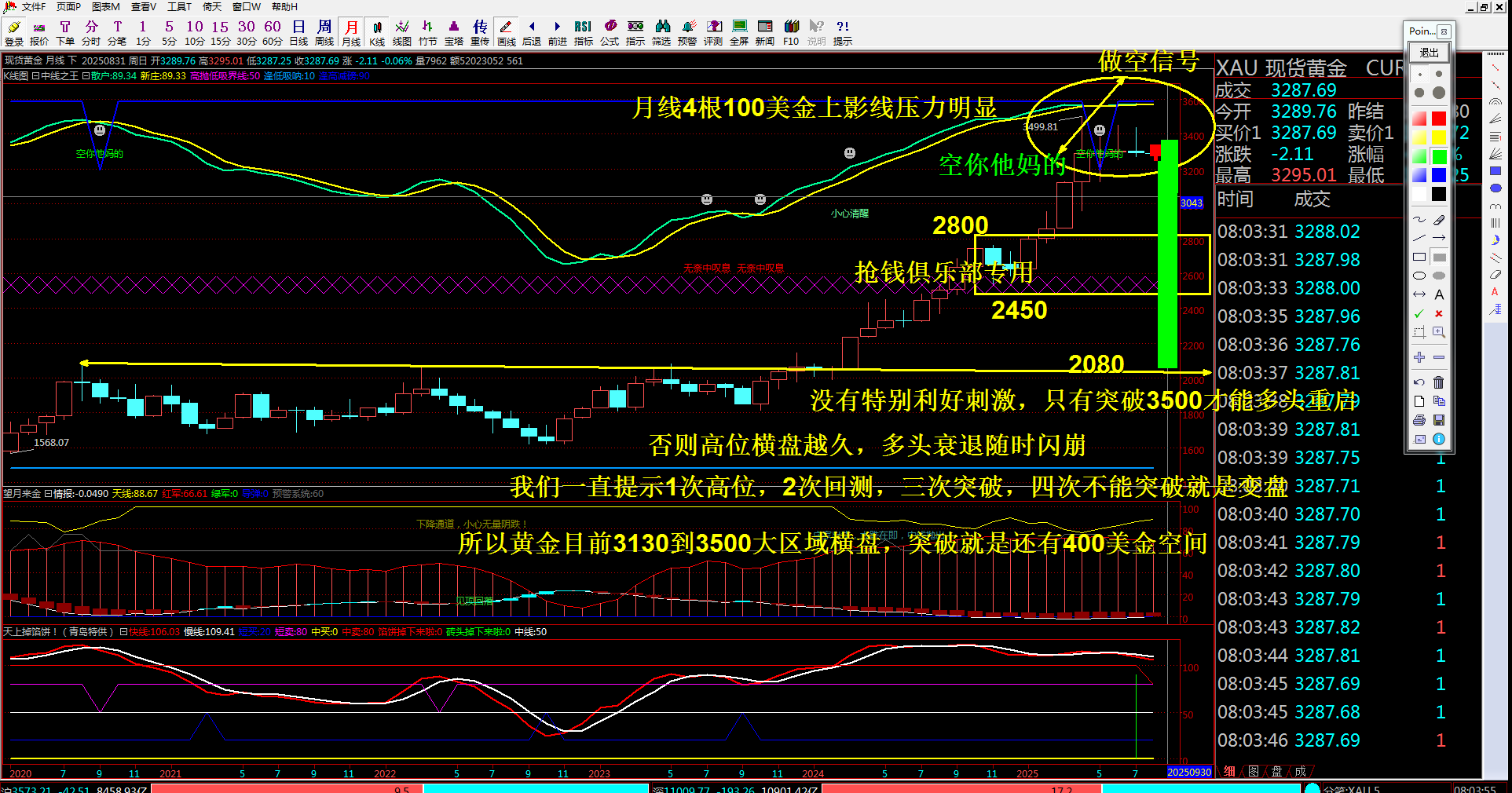 月线连续几月都不能突破3500区域,甚至3400上都没有站稳三天,说明上方压力很大,而且连续并排上影线,只有突破3500才能打开空间,现在全球避险逐步消退,唯一支撑黄金上涨的就是降息,除非降息超预期,否则持续多头动能难以走出连续上涨,周五的美联储主席讲话,暗示九月降息预期升温,黄金跌到3320快速拉升近60美金行情,目前3365位置运行,依然没有走出大区域震荡。首先黄金大区域3250到3405震荡没有改变,最近两周波动3315到3380横盘,波动幅度逐步缩小走势,而且伴随震荡横盘半年,三角整理末端是时候变盘突破了,是继续上涨,还是变盘调整夯实支撑,目前就是关注支撑压力破位即可,伴随两周内俄乌谈判能否达成,这个才是市场避险情绪消退的关键,降息预期和俄乌谈判都是决定9月是一个宽幅震荡,一个消息随时加大波动幅度和力度的关键,所以目前看压力还是3380上,支撑3305破位那就是考验3250区域。早上没有延续周五上涨高开高走,那么就是防止多头主力利用消息一步到位,最近两天阴阳交替,都是一天跌然后一天涨,来回都是30到50美金行情波动,所以不要追涨杀跌,目前黄金这个降息预期能否延续,还是关注3400得失,中间关注一个3385压力即可。综合上述操作思路如下: