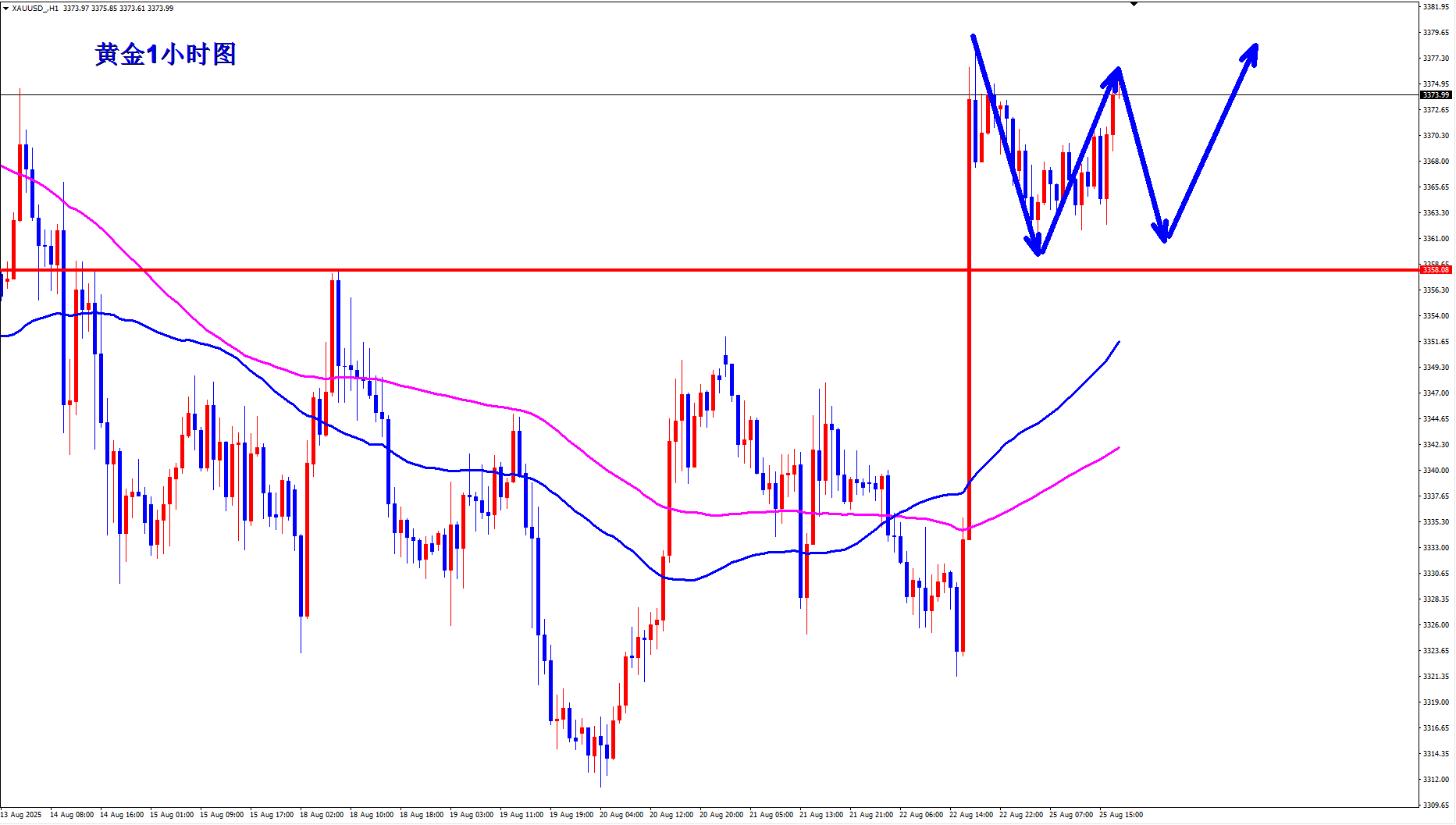 黄金1小时均线还是继续金叉向上的多头排列,黄金1小时3358一线支撑短线还是继续有效的,黄金回踩3358一线支撑还是继续逢低做多。
