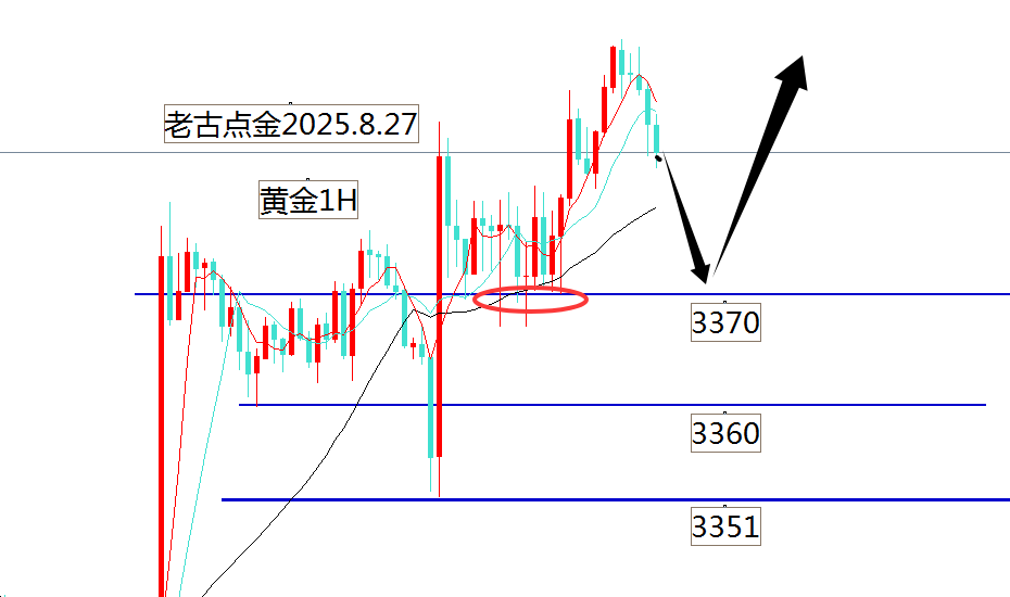 上面的分析图可以看见下面形成3个支撑平台,3351刺破了我们就调整思路看跌,没有破前都是坚持多头思路,今天老古预估它还是会反反复复的修复,虽然刷了新高,就黄金近期的调性都是难延续,如果意外在白盘就再次刷了新高就压考虑追多到3400上面。白盘思路是依托3370上面附近干多。