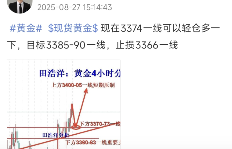 黄金下午触及3374一线我们及时给了做多的策略,行情依旧比较配合,我们成功在3380一线获利落袋为安,美盘前黄金维持震荡为主,下方继续关注3370-73一线短期支撑,晚间如果不破此位置我们可以继续保持回踩做多的趋势进行操作,毕竟大的趋势并没有改变方向,顺势才能把握住利润。如果你目前操作不理想,希望田浩洋能让你的投资少走弯路,欢迎前来沟通交流!