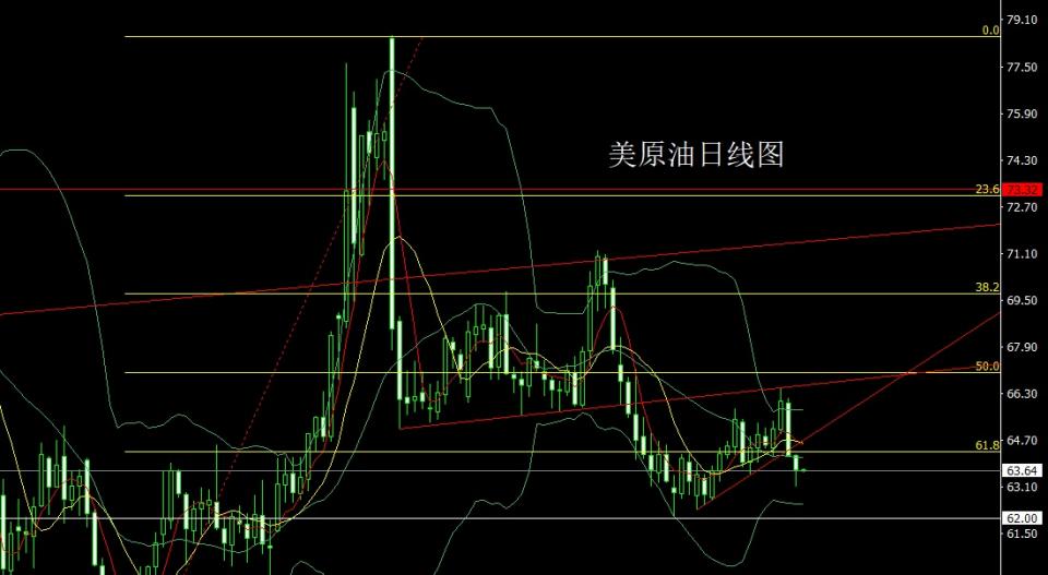 美原油:今日先拉升给出64空止损64.5,下方目标看63.5和63.1,跌破看62.8和62.5离场反手多。