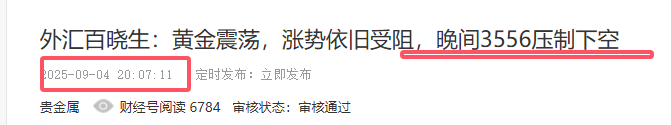 外汇百晓生:黄金3556空单获利,短线注意止盈