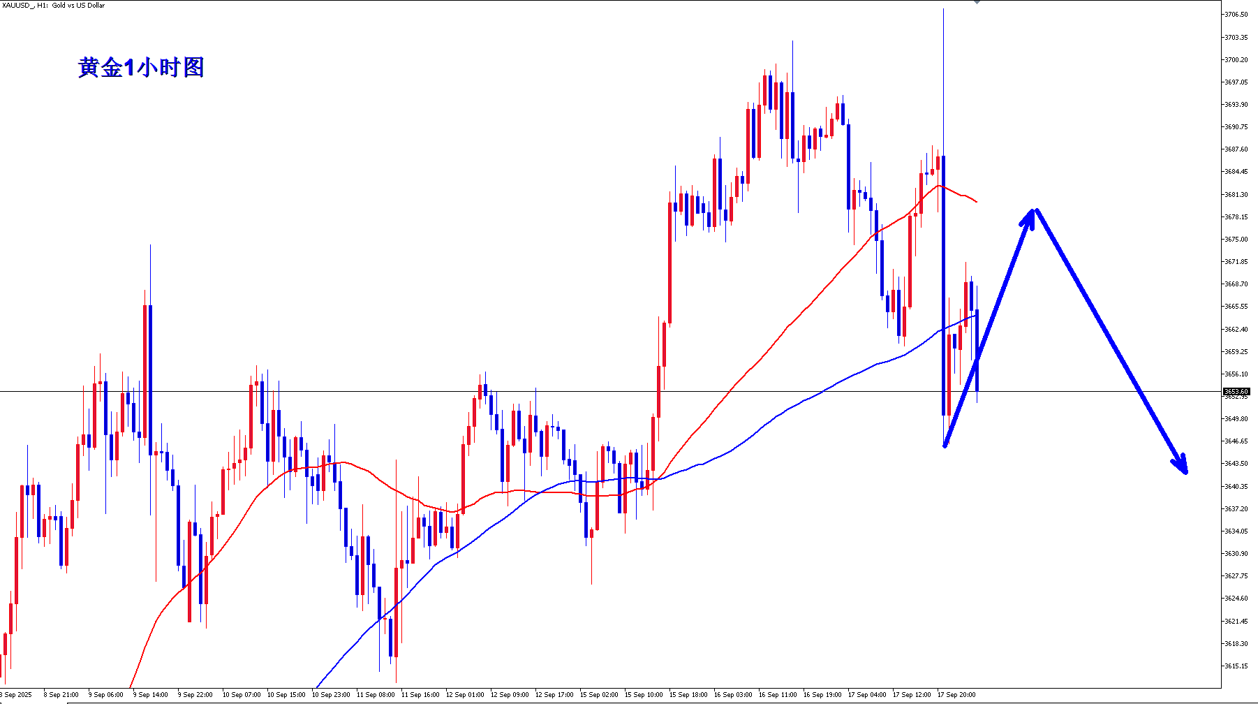 黄金3680空,保护3690,目标3630-3620;