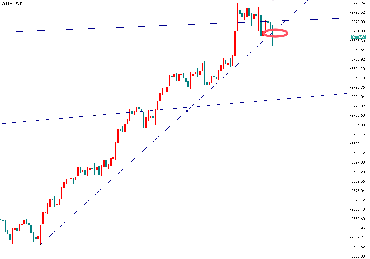 2025-09-24 08:45:01 浦汇FxPro:金界传奇:黄金30分钟图下破,当心后半夜走空! 眼下黄金30分钟图已然形成下破态势,后半夜则有走空的可能。建议3768-3770多果断离场,建议3775附近直接顺势做空,设4美元损,目标3750-3740即可!!! (投资有风险,入市需谨慎;以上建议仅供参考,据此操作盈亏自负)