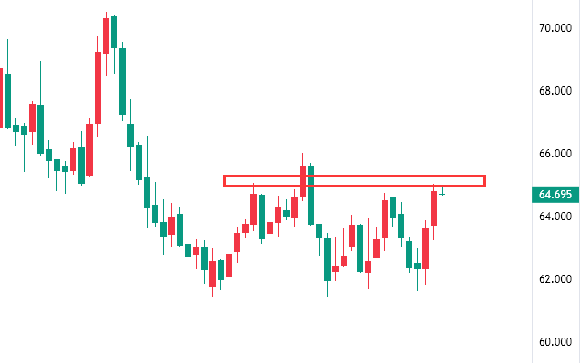 原油在65附近看下行,防守65.8,看63.6/63下方