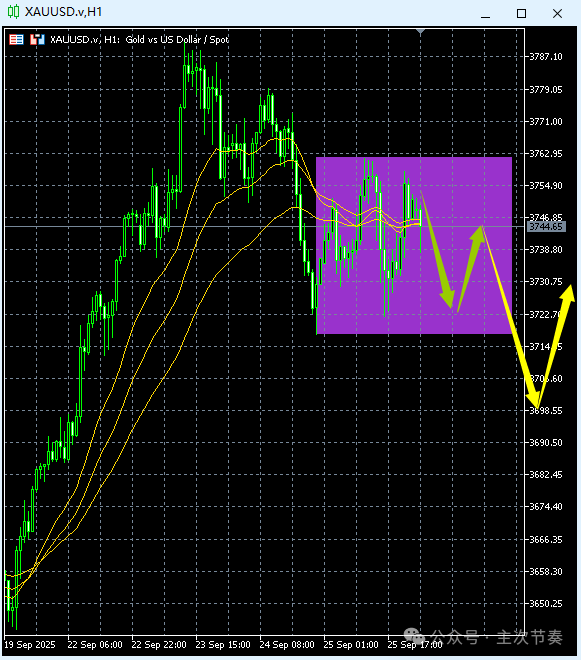 2025-09-26 10:03:02 浦汇FxPro:主次节奏:9.26一句话看懂黄金Gold 图文所示:24小时节奏预期 一句话看懂黄金Gold:局部水平区间形成,这是大涨后的正常休整,不影响中长期涨势延续。 预计今日波幅:55美元 空头阻力价2:3780.00 空头阻力价1:3762.00 多空均衡价:3739.00 多头支撑价1:3717.00 多头支撑价2:3695.00 观点分享,仅供学习参考,不构成交易建议。投资有风险,盈亏均自负。