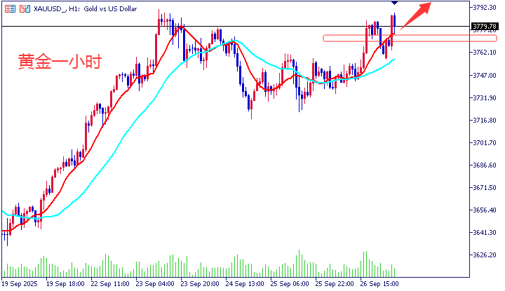 回到盘面黄金一小时级别,均线还是继续金叉向上的多头排列发散,毋庸置疑的多头强劲,黄金开盘下探3757快速反抽之后继续向上,那么黄金短线可能已经调整结束,日内3750美元上就是逢低做多的机会!