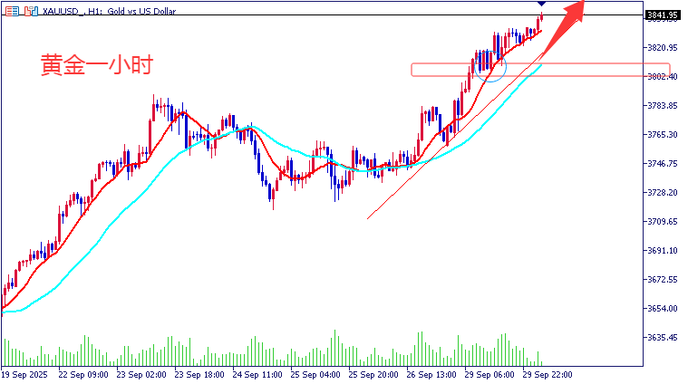 回到盘面黄金一小时级别,均线多头排列持续向上散发,日内围绕3790-3800支撑继续低多买入参与,周一黄金成功突破3790-3791前高压制点,直接打破前期震荡区间形态,完成“压制转支撑”的互换,3790-3800也因此成为今日核心防守位,向上关注3860。