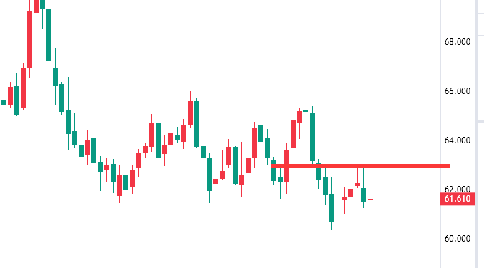 原油反弹62.4附近继续空,防守63.2,目标看61/60区间