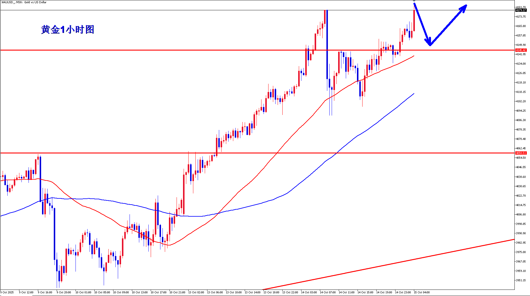 黄金30分钟昨天调整之后,黄金构筑双底,然后黄金美盘再次向上突破,而且突破了双底的颈线位,黄金现在4145已经形成支撑,黄金回落4145上继续逢低做多。