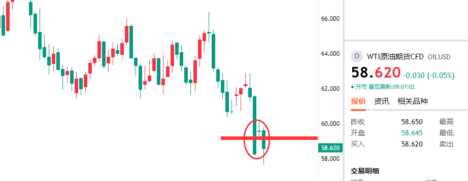 原油反弹59.2附近空,防守60,看57.7/57下方