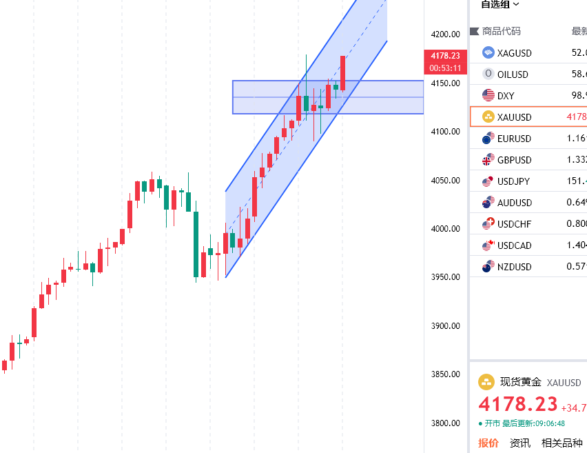 黄金回踩4150附近多,防守4141,目标看4170/80上方,反抽初见4192附近空,防守4200,看回落4170/60区间