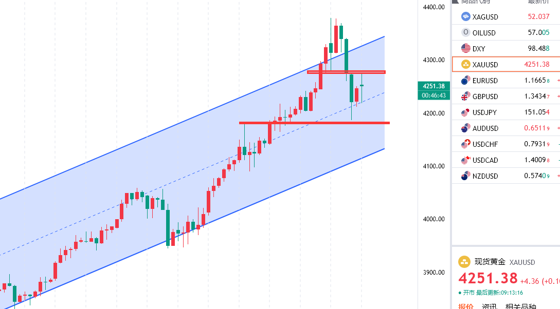 目前市场瞩目的几大焦点,在上周以及周末都慢慢发生了一些变化,首先是中美经贸方面,经过一系列硬碰硬的互相制衡之后,美方逐步有缓和的迹象,特朗普称对中国加征100%关税是不可持续的,后续还是想通过协商沟通达成一致,打铁还得自身硬,本次经贸矛盾就得以完美体现,咱们在很多地方都是慢慢站起来了,贸易摩擦一旦缓和,前期因此走出的上涨也会有所消退,上周五接近200点的回落主要也是因此, 其次刚刚达成阶段性和平协议的中东在周末也是再度开火,和平协议如同废纸,基本没什么公信力,所以地缘政治冲突的会给黄金带来持续支撑,另外就是美联储降息的时间窗口临近,持续的降息对黄金依旧有着支撑,技术面上看上周黄金强势冲击历史新高4378/79一线阶段性形成双顶压力,周五晚间更是走出一波200美金左右的大跳水,阶段性多头无疑是有所受阻,但是并没有说到了反转的阶段,所以短期操作上继续选择好进场时间,多空节奏一起去把握。