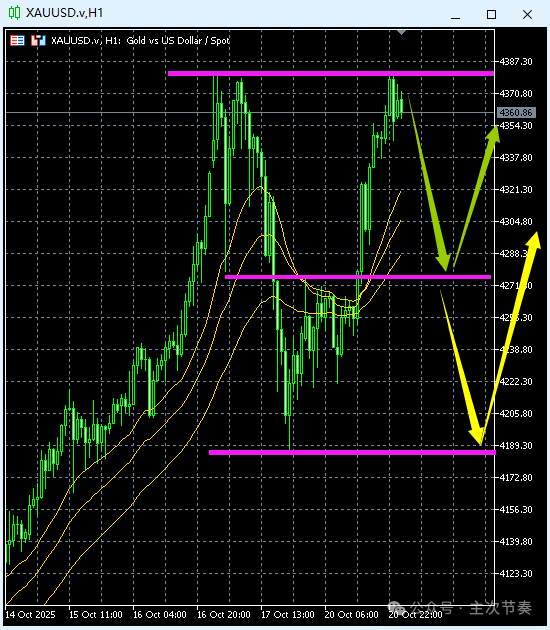 2025-10-21 08:59:01 浦汇FxPro:主次节奏:10.21一句话看懂黄金Gold 图文所示:24小时节奏预期 一句话看懂黄金Gold:及时回升高位,重新定义震荡区间;次要节奏特征表明后市还有新高。 预计今日波幅:85美元 空头阻力价2:4430.00 空头阻力价1:4382.00 多空均衡价:4350.00 多头支撑价1:4322.00 多头支撑价2:4280.00 观点分享,仅供学习参考,不构成交易建议。投资有风险,盈亏均自负。
