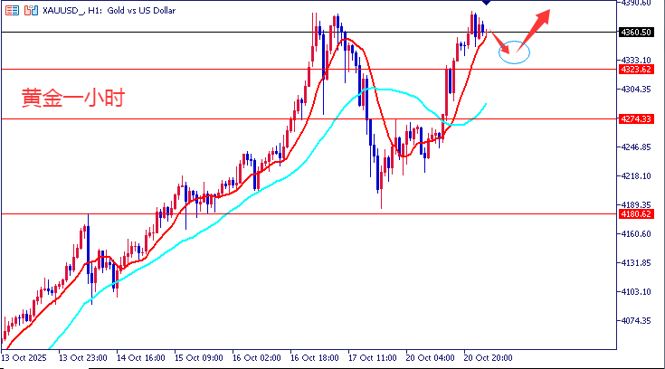 回到盘面黄金一小时形态,均线呈现多头排列向上散发,保持多头动能强劲,技术面上多头突破压力位再次上扬创新高,短线支撑下方留意4290-4315这两个位置,上方关注4380区域压制点,切记不要追高即可,但短线做多不会动摇,日内操作上我们继续保持逢低参与思路!