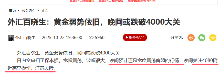 外汇百晓生:黄金守住四千大关,今天围绕4050低多