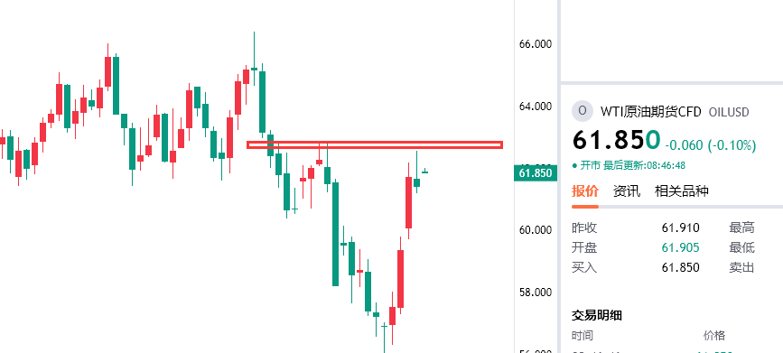 原油在62.4附近空,防守63.2,目标看60/59一线