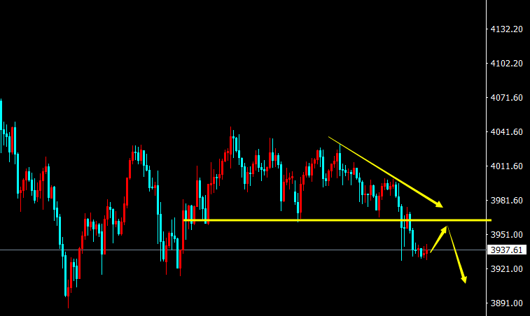 【周三操作】:黄金日内反抽于3960-65附近做空,目标3930-10附近,损3975.