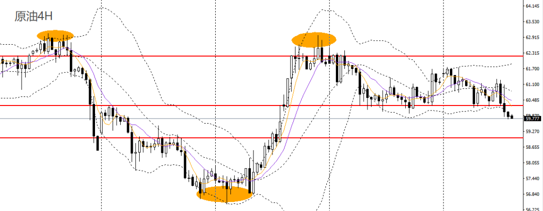 美原油昨日延续阴跌,承压于5日均线,日线RSI位于50下方,4小时失守60大关,短线趋势进一步转弱,空单可继续持有,短线可下看至58.50-59。
