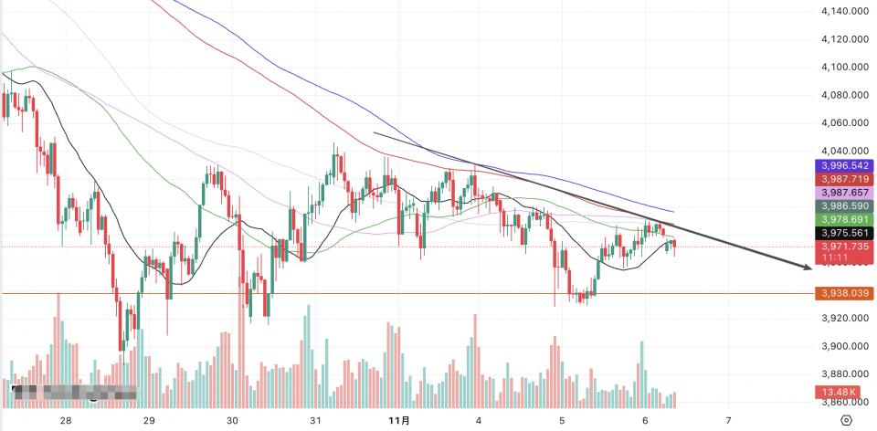 今日(11月6号)亚市早盘,金价保持在3990下方震荡,日线上的涨势已有减弱,1小时图上可以看到MACD显著的负面信号,KDJ完全跌下荣枯线,一旦跌回到3960下方,即能再次看向3930一线。