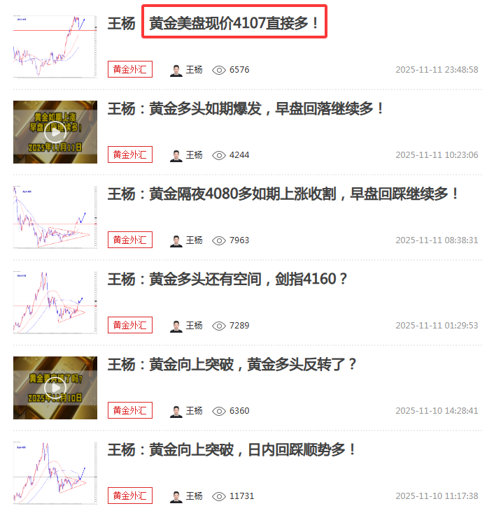 浦汇FxPro:王杨:黄金隔夜4107多继续大涨收割,早盘回落继续多!