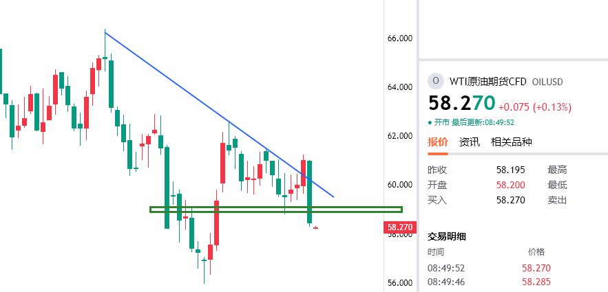 原油反弹59附近继续空,防守59.8,看58/57一线