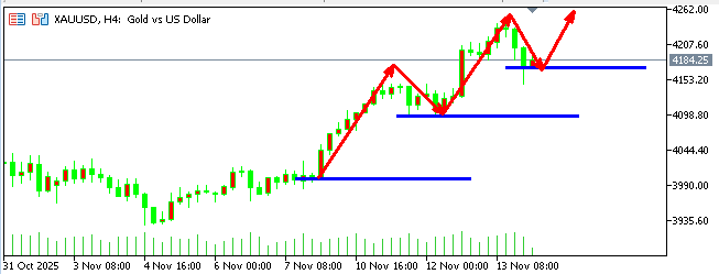 多头的脚步挡不住,底部大阳线起飞,是明显摁不住,美联储12月份降息又在蓄势中,同时美国政府停摆结束,一大堆经济数据即将公布,显然数据不好,利多黄金也是必然的,4250见