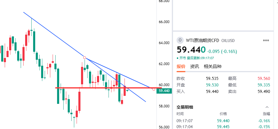 原油反弹60.2附近空,防守61,看59/58一线