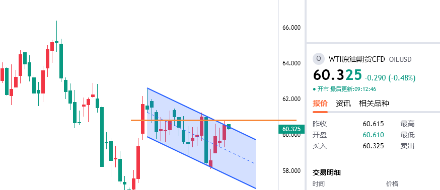 原油反弹60.7附近空,防守61.5,目标看59/58一线