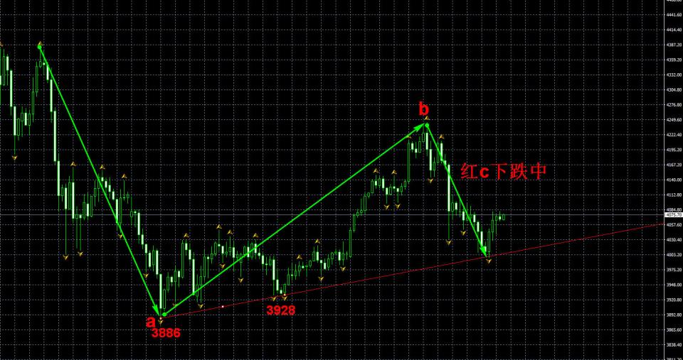 我们继续看图,目前黄金红c下跌之中,尽管4245以来我们基本一直看空,但是昨天强调4245的下跌已经面临3886-3928的连线支撑了。杀跌意义不大,跌破4007的话反弹4050再下。实际走势而言,跌破4007还是受制于3886-3928连线支撑,后面反弹4050的下跌也比较有限,黄金反弹4050仅仅下跌4029就又开始继续反弹,昨天走势相对比较扫荡。目前的话,4245-3998已经完成了红c的第一轮下跌,后面的问题就是是否进行拓展酝酿新一波的下跌,跌破3998的话基本就迈入新的下跌阶段。也就是说3998这里的反弹可大可小,总之,反弹的话还是做好多次做空的准备,下去的话守住3998还是要注意多头抵抗,跌破才能打开进一步的下行空间。今天4080下先看回落,如果突破4082的话,4095附近、4110附近以及4145承压再继续看下跌,做好对应的风控即可。