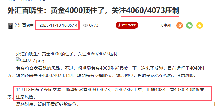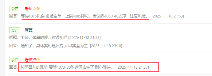 在睿思财经路演直播间,也提到了,等待4073-80附近的位置再去空,也给了4075的实时空单,有所收获,回踩的幅度也符合我们看4040-50的支撑。