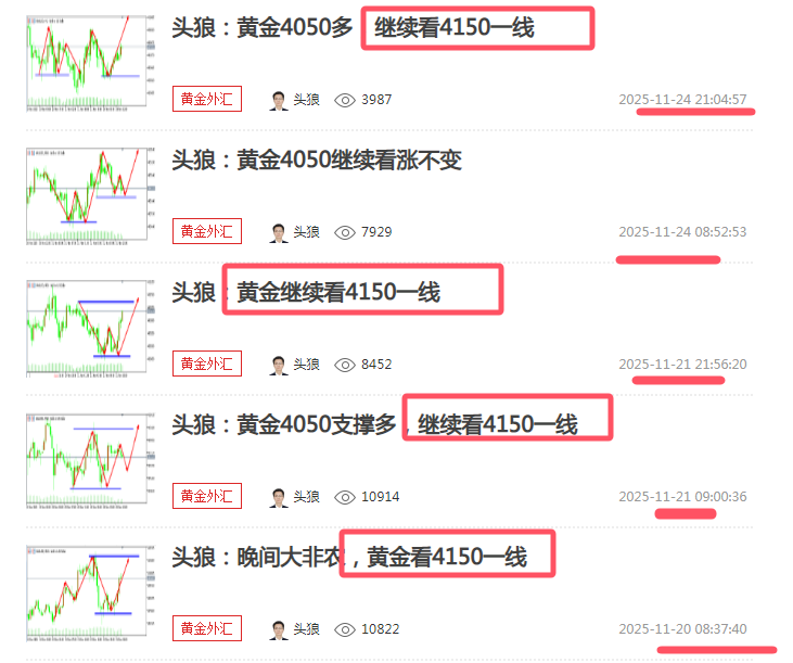 这个4150一线我们一周千都市预测这个,但市场非得来个360度大转弯,狼哥也没办法,所以呢我们默默承担着回落,但丝毫不影响我们继续看4150一线,就这么简单,隔夜黄金一度冲到4140上方