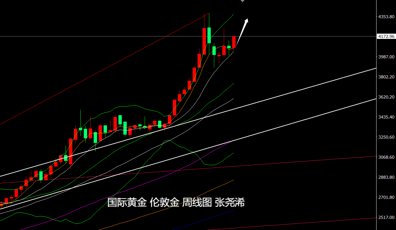技术上,周线级别,金价近几周调整,但低点不断上移,并也未跌破10周均线支撑,本周走势又据此反弹走强,多头动力加大,布林带也延续向上发展,前景看涨,预期后市即便是不上涨,也是震荡波动为主。故此,短期仍有望继续反弹冲击4300美元关口乃至4400美元,下方则保持在10周均线支撑上方低多看涨不变。