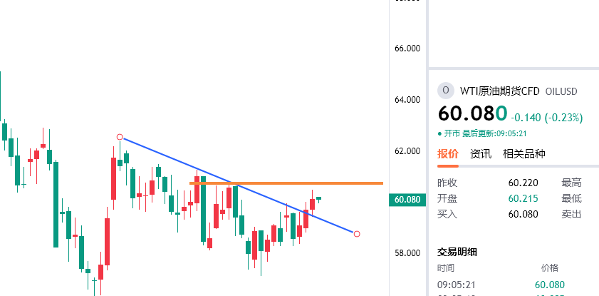 原油在60.6附近空,防守61.4,目标看59/58一线