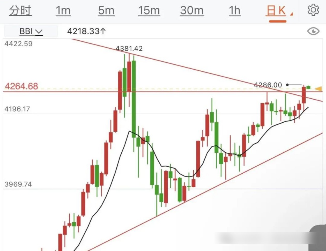 美联储利率决议后,我们看好黄金冲高回落,但也担心空头走不远;下午6点钟发视频强调要跌是不能上4220-25区域,上去就重回多头了,然后测试早盘高点甚至破位。实际走势上,昨天亚盘4240以上下跌,4205一带亚欧盘两次没破;美盘时段多头逆袭,反向破位盘中阻力4220-25区域后并上破早盘高点及关键阻力4260-65区域冲上4280,最终日线以大阳线收盘。