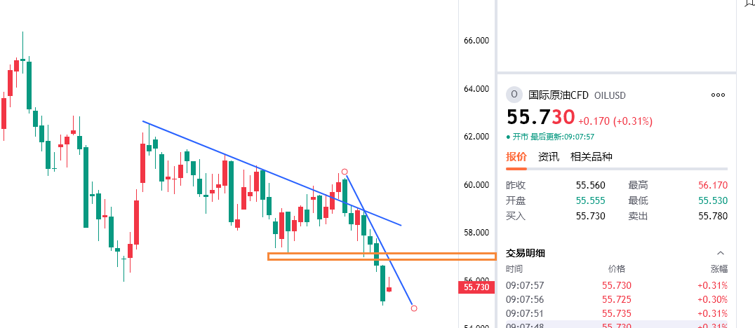 原油反弹56.5附近空,防守57.3,目标看55/54一线