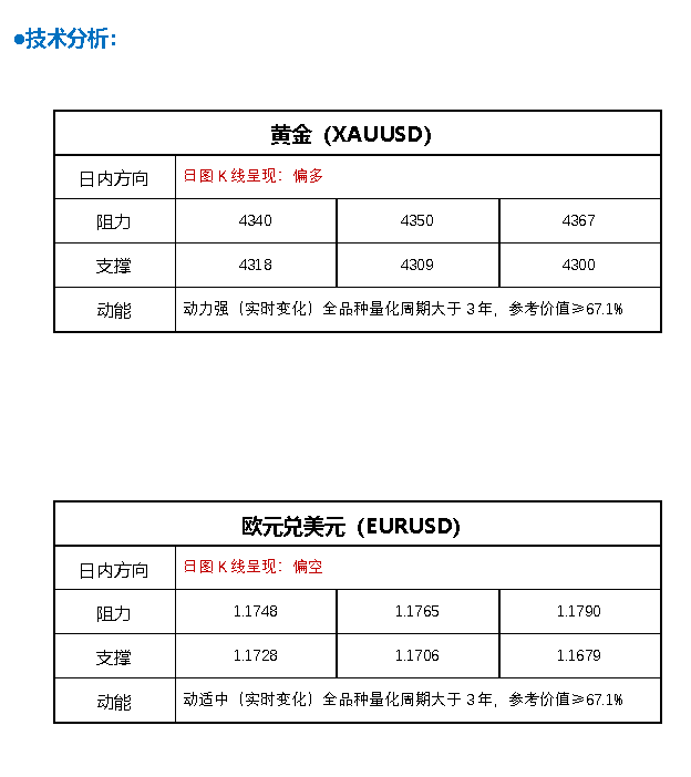从技术面来看,相对强弱指数(RSI)显示,看涨势头正在加速,表明金价可能触及4381美元/盎司的历史新高。如果这一结果实现,金价将扫清障碍,挑战4400美元/盎司、4450美元/盎司和4500美元/盎司的关键阻力位。下行方面,如果金价跌破4300美元/盎司,下一个支撑位在12月11日高点4285美元/盎司(该高点已转为支撑位),在4250美元/盎司附近还有进一步的支撑,若失守该位,金价可能会进一步回落向4200美元/盎司。