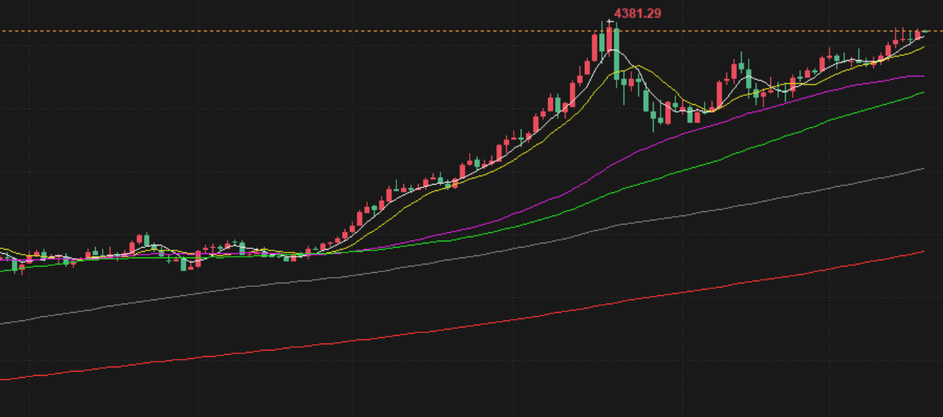 昨天黄金继续大起大落,白天上晚上下,从运行逻辑上来看白银强势上行,这也是黄金反复在创新高的原因,但是白银在下跌时,黄金的跌幅远大于白银,从上周到昨天的走势说明了这一点,所以涨跌都是很快速完成,昨天的上冲到下跌力度也是很快,包括尾盘给出的42空也是很快回到28,行情不管涨与跌的修正全是盘中完成,所以很难看作是单边上涨,相反每一次的破高空都是有很不错的收益,至于还是等回调到边线再入比较好,所以对于当下的行情卡点和结合右侧相对好一些,而今天早盘还是在靠近30分钟压制区形成下跌,短期支撑4320和10这里,其次就是4272的四小时下线这里,而上方压制下短线还是在50-58-72及前高,所以综合得出结论如下:卡点操作,多空结合,二次反弹均价线这里空头参与,下方小时图4310支撑这里短线参与多。