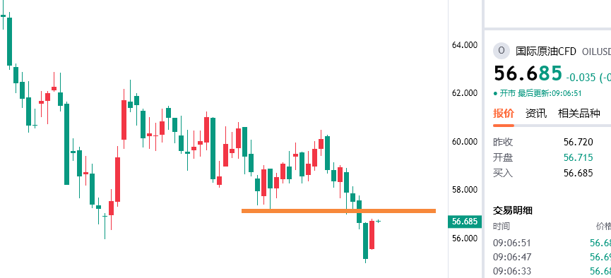 原油反抽在57.4附近空,防守58.2,看55.8/55下方