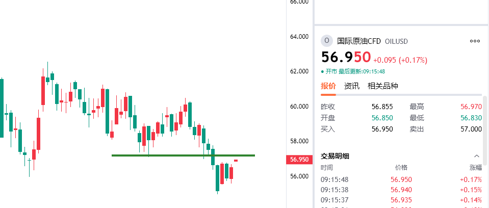 原油反弹57.2附近空,防守58,目标看55.8/55下方