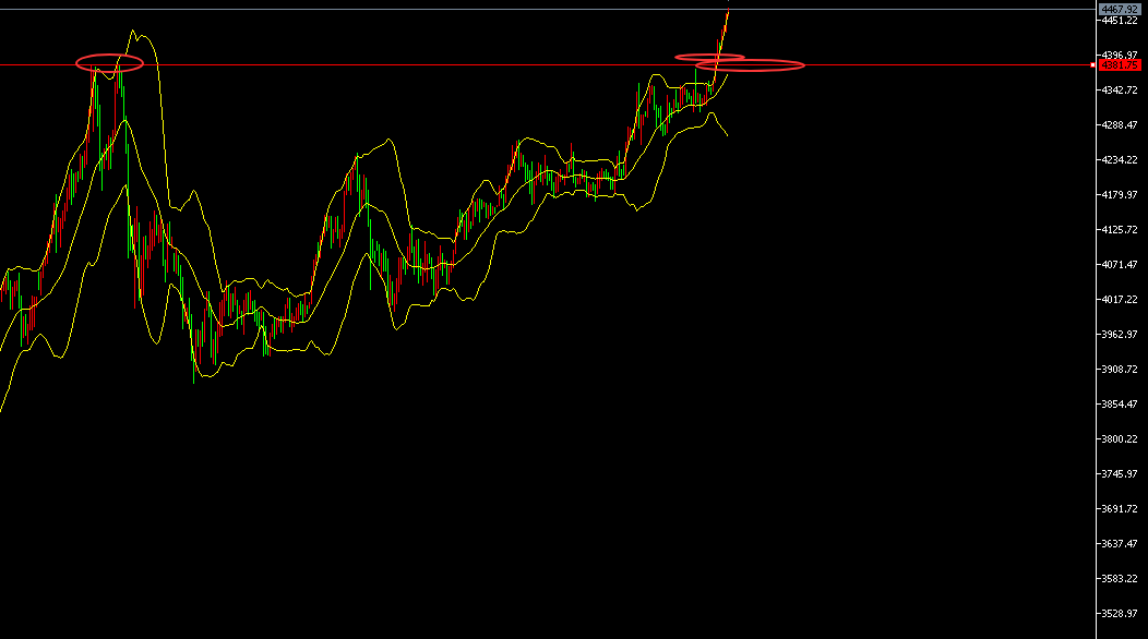 4小时图突破左侧高点走出延伸性多头释放空间,目前结构依旧表现强势,操作上短线回撤暂时短线顺势多,后面做空,得结合K线结构的冲高受阻回落后才能确认阻力,目前不断创新高,阻力点已经不好寻找。只有技术结构上出现了冲高止涨的形态才能确认。小周期15分钟图的单边上涨中的双均线支撑在44364420.波动基数大,短线操作回撤确认支撑择机短多。切入点结合形态临盘应对。