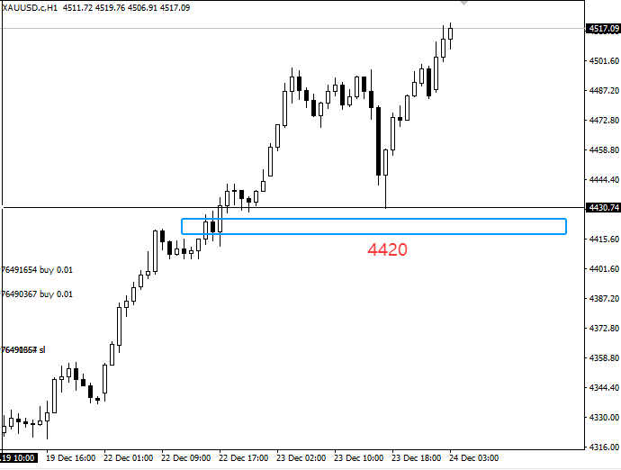 什么时候去看空,等黄金高位震荡涨不动的时候,等黄金突破暴跌之后。现在没看到这种迹象,大家放好心。今天是平安夜,明天是圣诞节,圣诞节后黄金会上攻4600美元/盎司,黄金多头有点急不可耐了.祝福大家享受财富增值的同时,花钱过好节日,赚钱花出去才有意义。点赞文章发财,明天我们继续分析黄金,交易的路上陪伴你一起走。