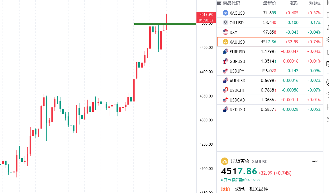 圣诞节前夕,金银再度展现独特的市场魅力,接连刷新历史记录,白银的强度犹在黄金之上,除开宏观面的支撑,需求端的强劲是多头最大的底气,而黄金多少受到共振提振,目前市场炒作的核心点有三,其一良好的经济数据加剧美联储降息预期,其二中东以及美委地缘政治矛盾反复,避险情绪推动,其三就是白银,钯金等有色贵金属的强劲需求带动,版块联动的强势带动。技术面上看黄金上个交易日早盘从4445附近一路走高,亚欧盘反复多次冲击4500关口未果在4497一线承压,美盘走出深度调整,跌破4470加速下行最低触及4429一线然后企稳反抽,晚间多头加速站上4500大关,早盘延续多头强势再度拉高目前最高触及4525一线,早盘的话关注4490附近支撑,回踩接多思路对待,关注欧盘时段回踩情况,美盘基本休市不做太大的期待了。