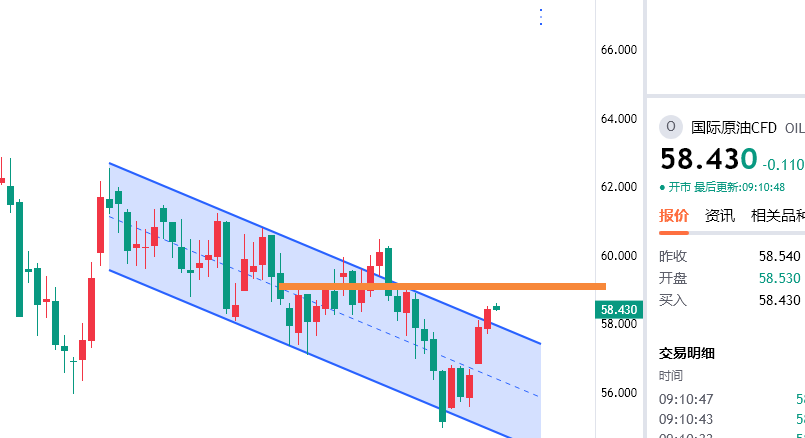 原油反抽在58.6附近空,防守59.5,目标看57/56一线