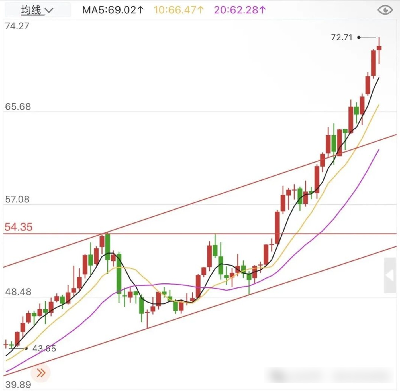 沪银大涨新高,必定带动国际白银继续新高!今日重点关注70-70.5美元及5日线支撑,之上保持多头强势,跌落则走弱。总之,当前一切回落不破70-70.5区域和5及10日线都是多头,下破则需要警惕风险。操作上,低多布局上周已经提示减仓,继续持有即可,给回落补,不给持有;盘中扫荡厉害,短线低多为主不追涨,转弱再做空。