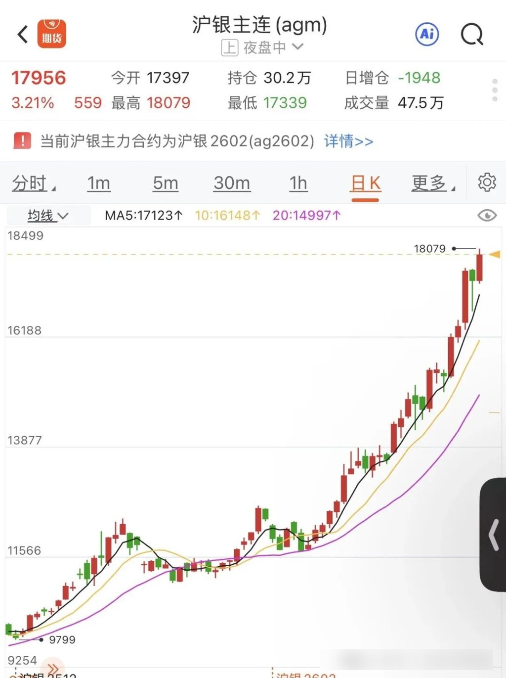 因圣诞节假期,昨日国际市场休市,但国内市场依旧活跃。周三贵金属市场冰火两重天,昨天行情也不遑多让!国际现货钯金周三大跌,昨天广期所钯金开盘跌停,盘中打开跌停板,不过最终仍以大跌收盘;铂金则低开高走,继续历史新高以大阳线收盘。沪银开盘先跌,很快稳住跌幅并企稳上涨并再次历史新高!贵金属四兄弟,钯金大跌,铂金白银大涨,黄金横盘,走势相对分化!