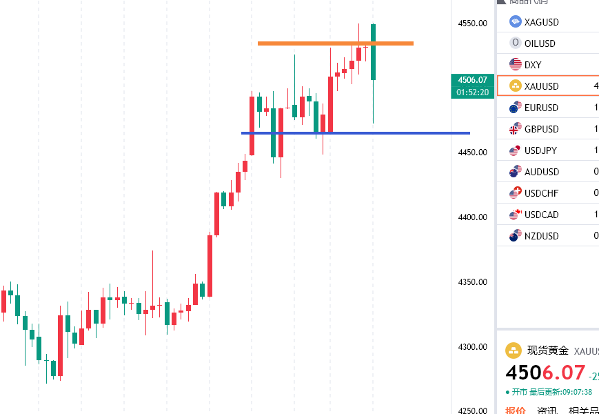 近期随着美联储降息预期的不断升温,加上市场的炒作,美元指数也是不断承压偏弱运行,宽松的市场氛围预期有力的支撑黄金白银走强,其次俄乌谈判迟迟没有结果,时间越久市场担忧情绪越重,中东美委目前局势依旧紧张,地缘政治冲突引发的避险情绪也是给到金银一定支撑,最后因为供应短缺,光伏等需求强劲,白银,钯金,铂金等都是强势拉伸,版块的共振也是给到支撑,三管齐下导致金银不断冲击历史新高,尤其是白银尤其疯狂,跟黄金交相呼应,具体走势上看,上周五黄金白盘冲高4531附近承压之后走出一波有效回落到4492附近企稳反抽,然后维持窄幅整理,晚间先是二次冲高未果走出一波回踩,在4512附近企稳迅速拉伸再度刷新历史高点触及4549附近然后承压再度回落维持高位整理收尾,日内早间开盘二次拉高在4549一线形成目前双顶压力,然后走出一波跳水行情一度触及4472附近然后走反复,短期来看冲高回落之后看反复的震荡整理,暂时不盲目看涨,关注回踩企稳情况,下方关注4460/70一带关键支撑带,操作上亚欧盘反弹先空,关注欧美盘后企稳反弹的机会!