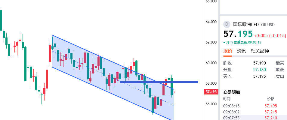 原油反弹57.7附近继续空,防守58.6,目标看56/55一线