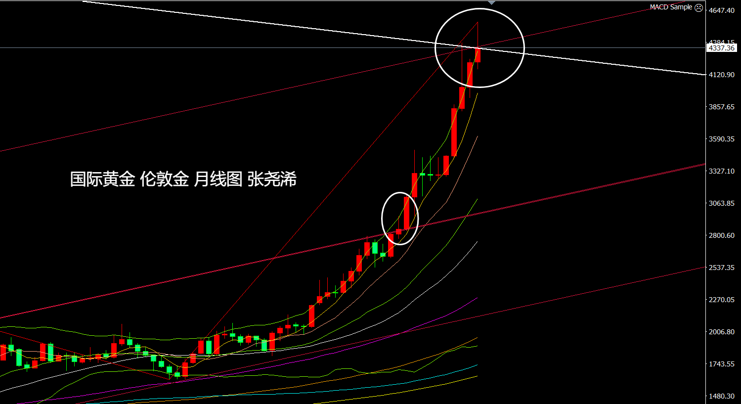 技术上,月线级别,金价本月在临近收官之际跳水回撤,重回趋势阻力之内,并再度走出倒垂见顶看空形态的收线倾向,本月收取此形态,后市将再度增强回踩4000-3900美元区域或更低位置的风险;反之如次月再度走强,走出雷同今年2月到3月突破趋势线压力的行情,将会增强后市看涨前景,直接跟进看涨至5500-6000美元区域。