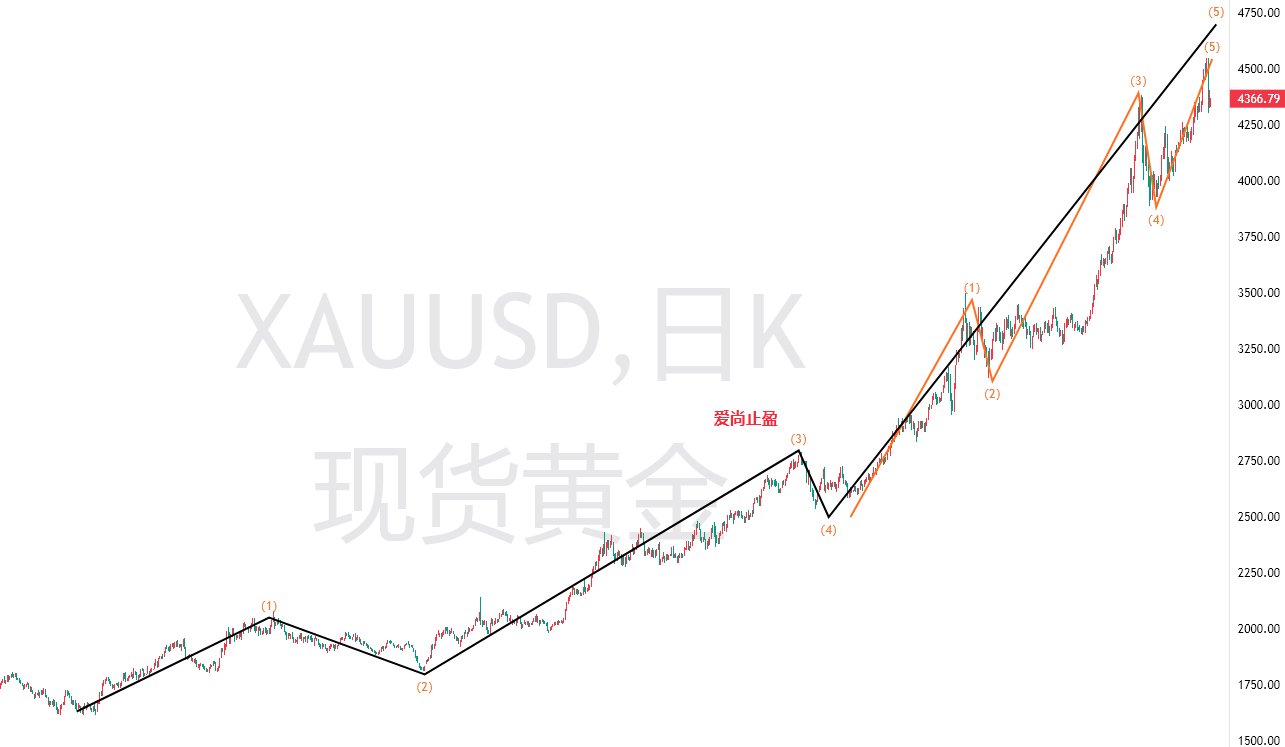 在昨天的视频里,我给出的观点是倒车接人,虽然昨天黄金是按预期走上涨,但是,当前的日线形态偏空,短期需谨防回落风险。日线结构上,周一的大跌,我视为5-5-4的回落,也就是,当前黄金可能处于5浪上涨的末端,理论上,黄金应该还有一个高点,也就是突破4550,但需要注意的是,金价突破4550后,5-5-5上升走完,就需要提防中期回落。
